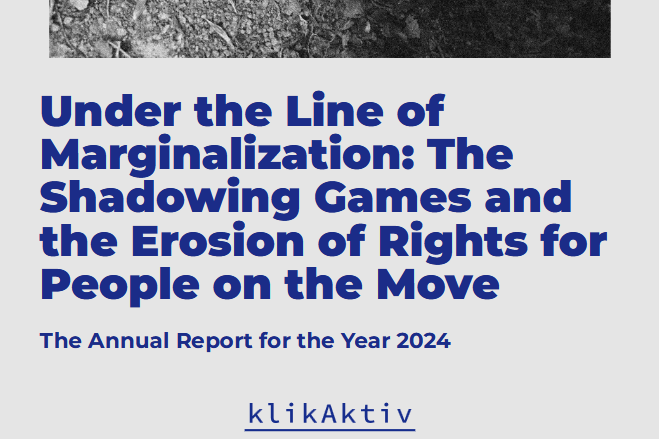 Our partner organization in Serbia, klikAktiv, has published its annual report “Under the Line of Marginalization: The Shadowing Games and the Erosion of Rights for People on the Move” which covers the situation on the ground for refugees throughout the year 2024, with an overview of the new developments, EU external borders and migratory policies of state institutions.